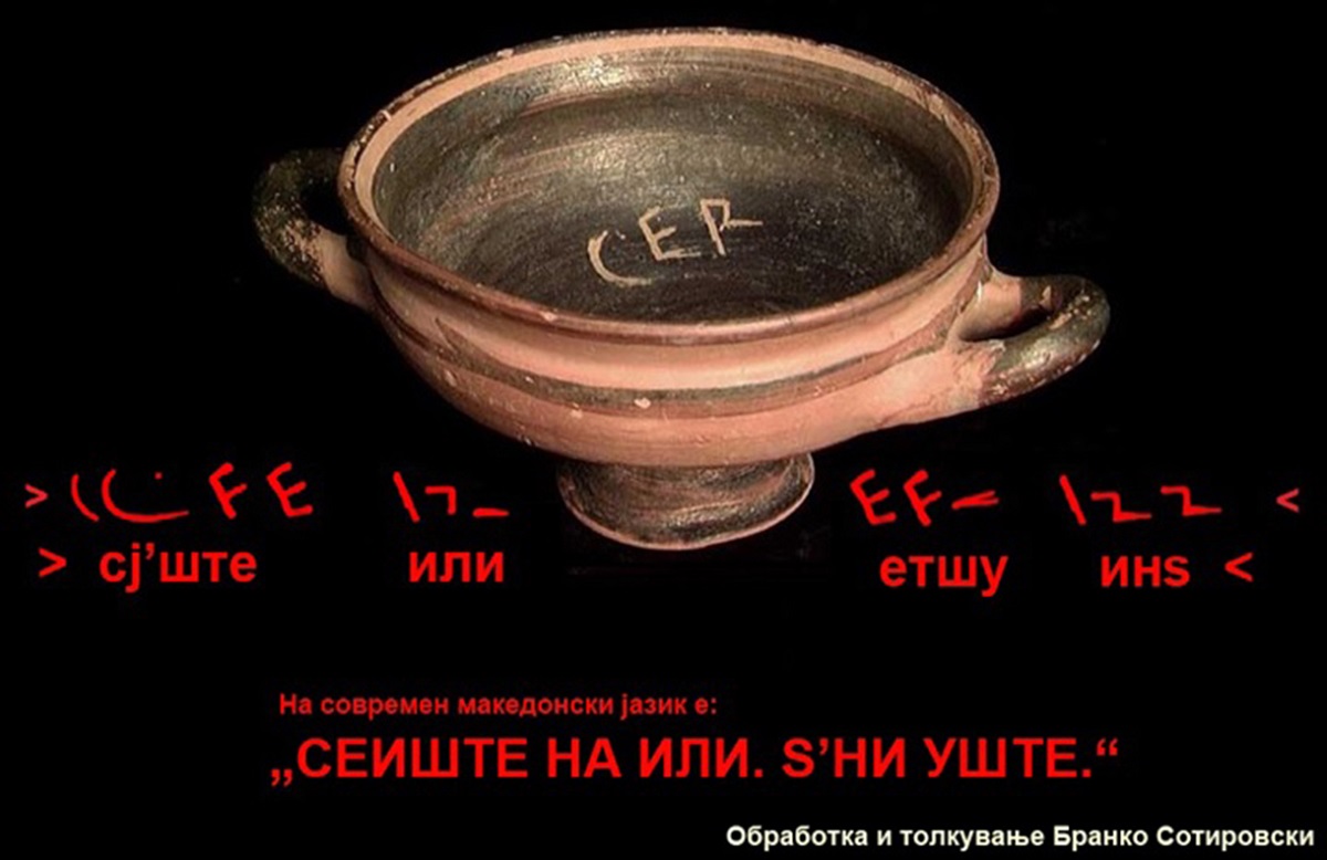 Имено, Сицилија тогаш претставувала посебна Зета со култоролошки и цивилизациски одлики како дел од древаната македонската држава, големата Зета Македонија распространета на пет континенти, со сопствено и единствено уредување, писменост и култура, чиј најстар досега пронајден писмен запис е со датираност од 400.000 години македонска ера пред преименувањето на македонската вера на Вистината во Христијанство. Текстот во садот е доказ за долгомилениумскиот одржлив контнуитет на македонскиот јазик, азбука, и умешност на изразување во вид на лигатури кои истовремено имаат и уметнички и лингвистички